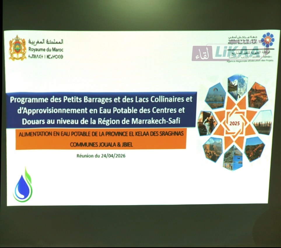 انعقد، يوم 24 أبريل 2026، بمقر إقليم قلعة السراغنة، اجتماع ترأسه عامل الإقليم سمير اليزيدي، خُصص لتتبع تقدم مشروع تزويد دواوير جماعتي جبيل وجوالة بالماء الصالح للشرب، بحضور مختلف المتدخلين المعنيين.